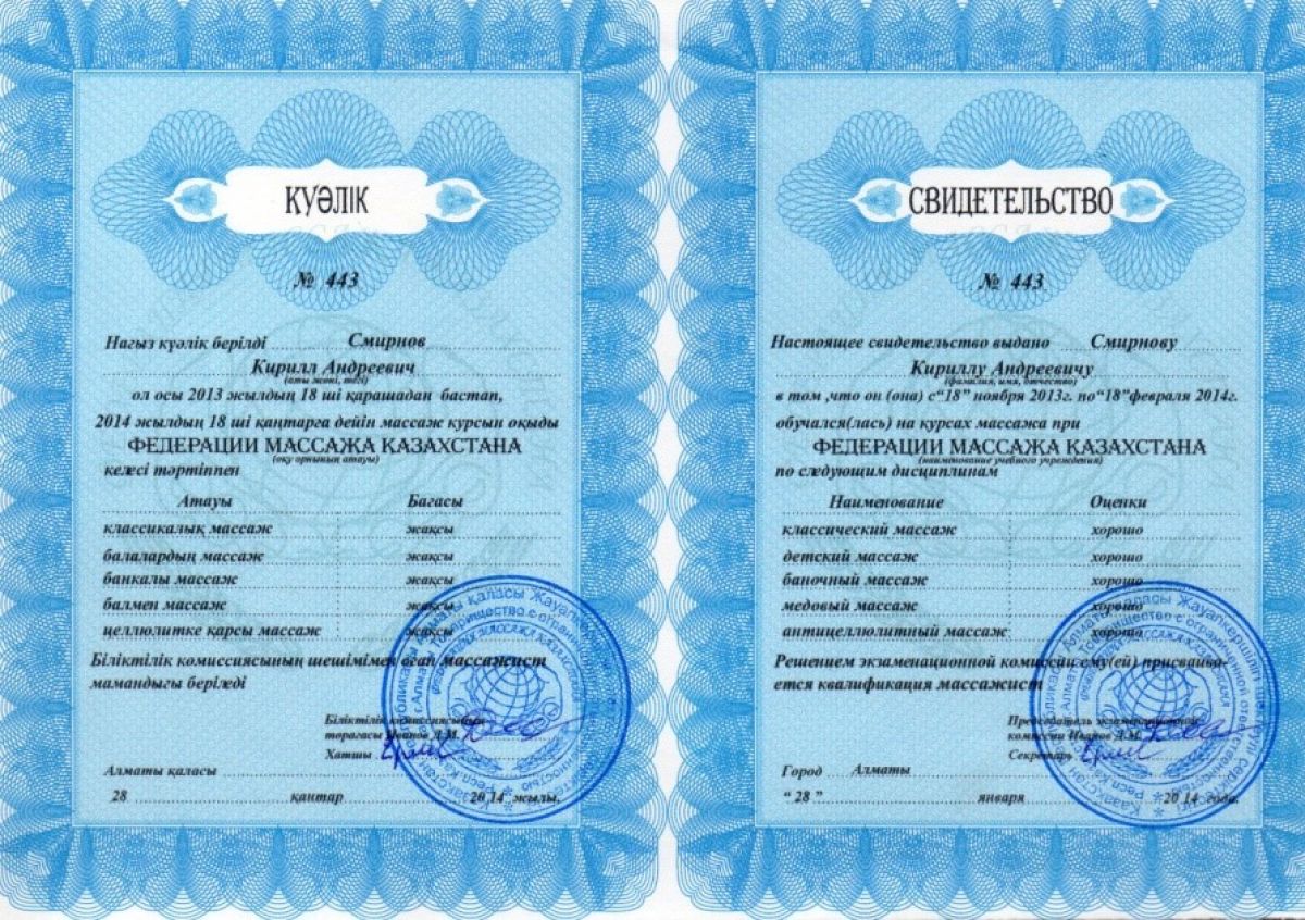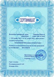 2012г. КазНМУ им.Асфендиярова, Интернатура по специальности: «Врач общей практики»