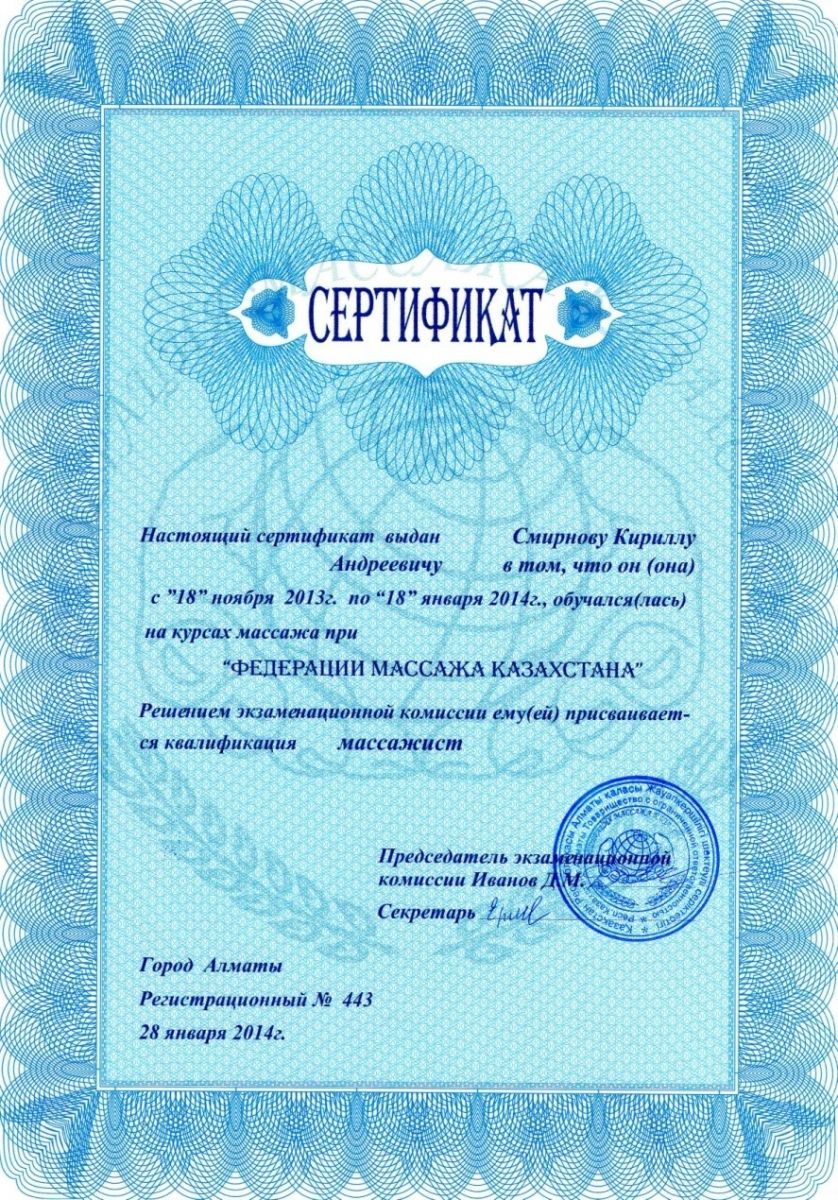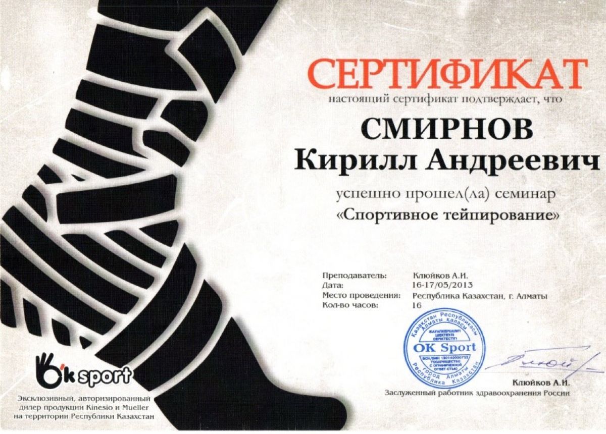 2014г. Первичная специализация по специальности: «Спортивная медицина»