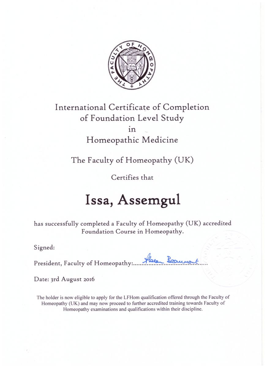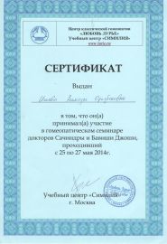 • 1996 г. – повышение квалификации «Врач-гомеопат».