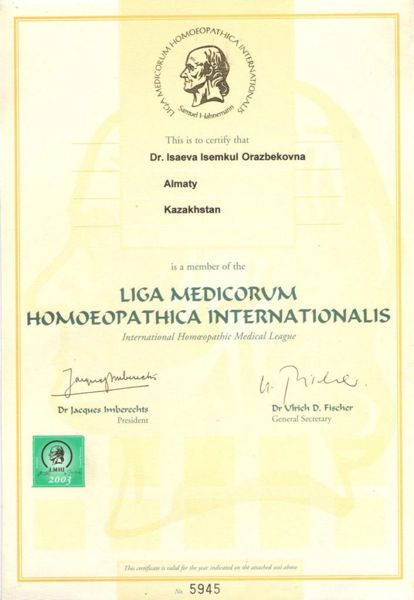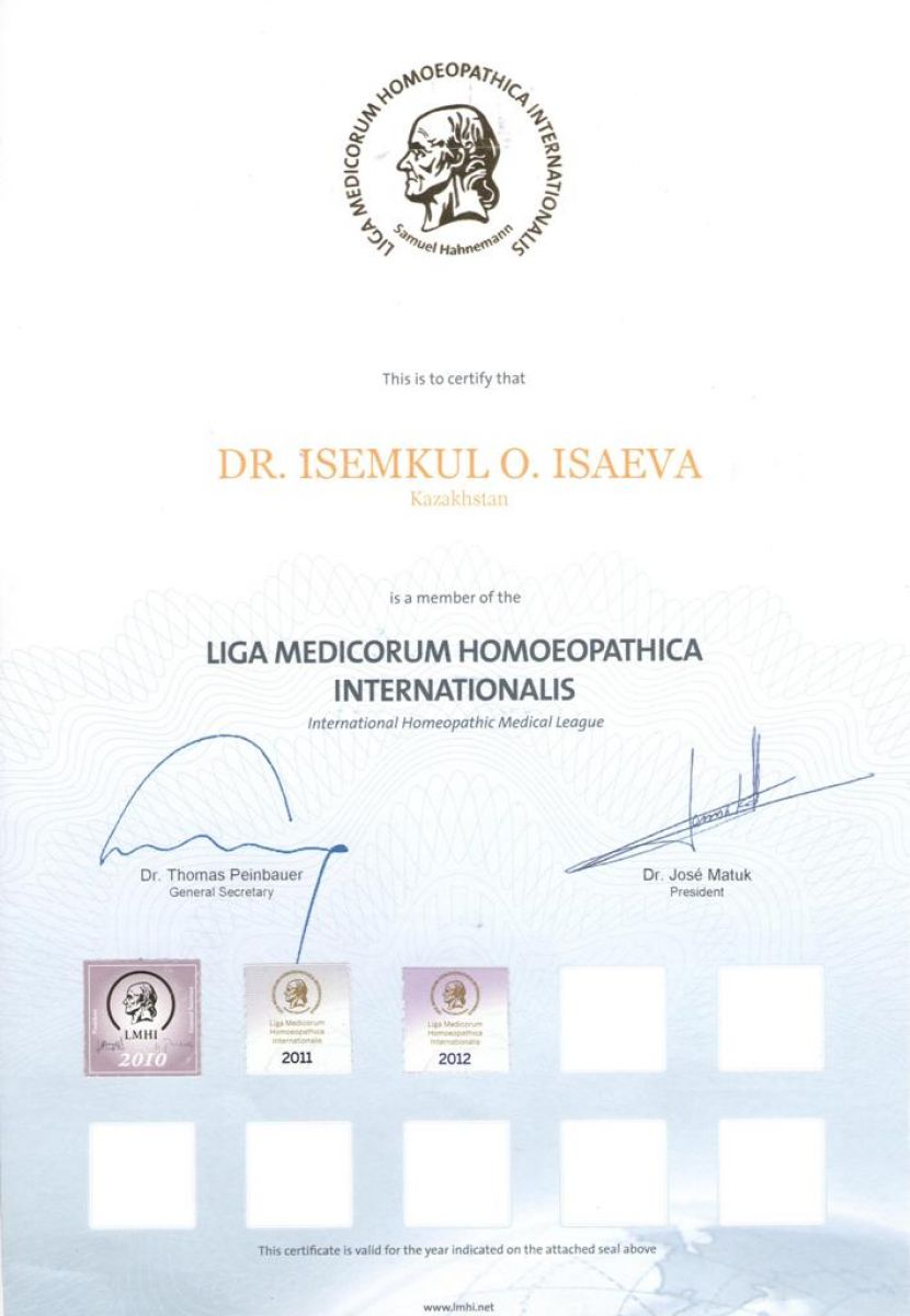 • Халықаралық гомеопаттар лигасының мүшесі;