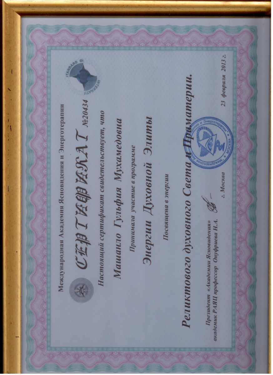 - Халықаралық көріпкел және энерготерапия академиясы (Москва, РФ);