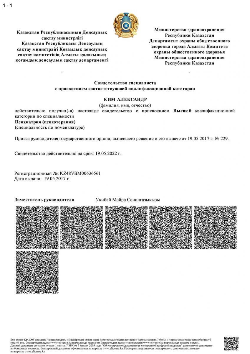 - 2000-2003 жж. – клиникалық ординатура, «Психотерапия» мамандығы.