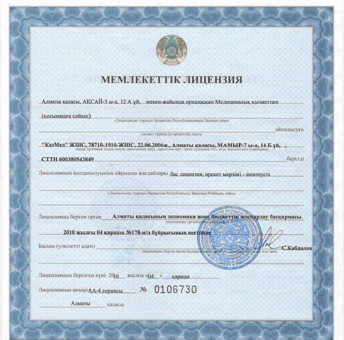 Біздің клиникамызда ең жоғары деңгейдегі кәсіби мамандар, кәсіпке бейім дәрігерлер жұмыс істейді. Олар өз ісіне шын жүректен беріліп, адамдарды жақсы көреді және оларға көмек көрсетуге дайын. "КазМед" - бұл медициналық мамандар, менеджерлер, медициналық бикештерден құралған ұйым, олар өз пациенттерінің денсаулығы үшін жауапкершілік алуға дайын. Клиникамызда жұмыс істейтін барлық қызметкерлер - үлкен тәжірибесі бар және пациенттерге мейірімді көзқараспен қарайтын дипломдалған мамандар.
